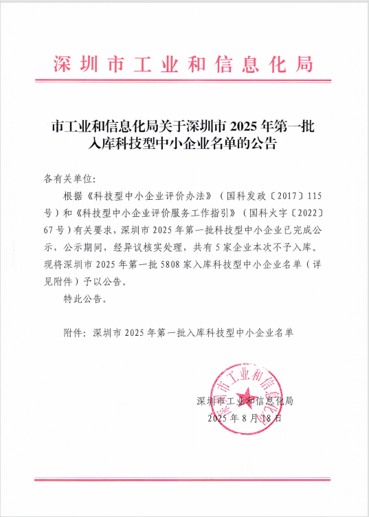 深圳市2025年第1批入库科技型中小企业名单公告正文.jpg PICTURE