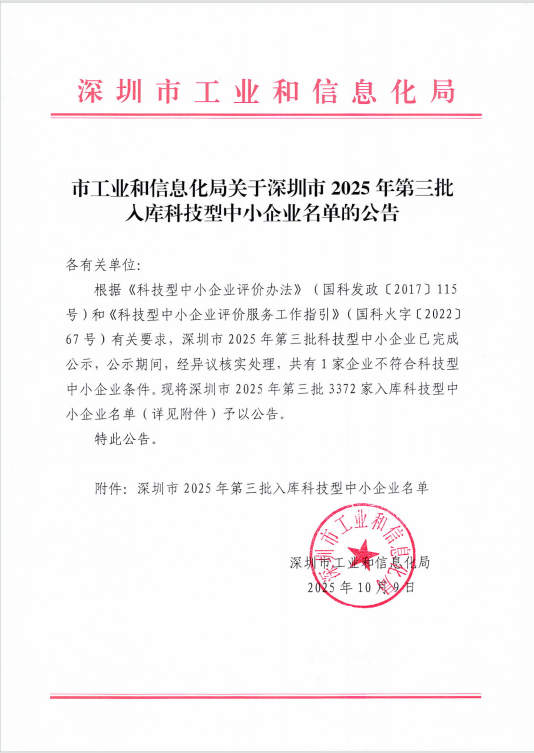 深圳市2025年第3批入库科技型中小企业名单公告正文.jpg PICTURE
