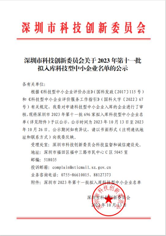深圳市2023年第11批拟入库科技型中小企业名单公示正文.jpg PICTURE