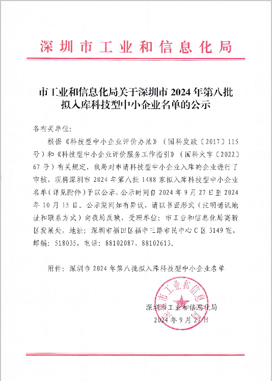 深圳市2024年第8批拟入库科技型中小企业名单公示正文.jpg PICTURE