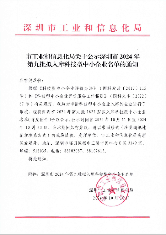 深圳市2024年第9批拟入库科技型中小企业名单公示正文.jpg PICTURE