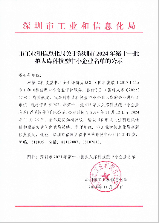 深圳市2024年第11批拟入库科技型中小企业名单公示正文.jpg PICTURE