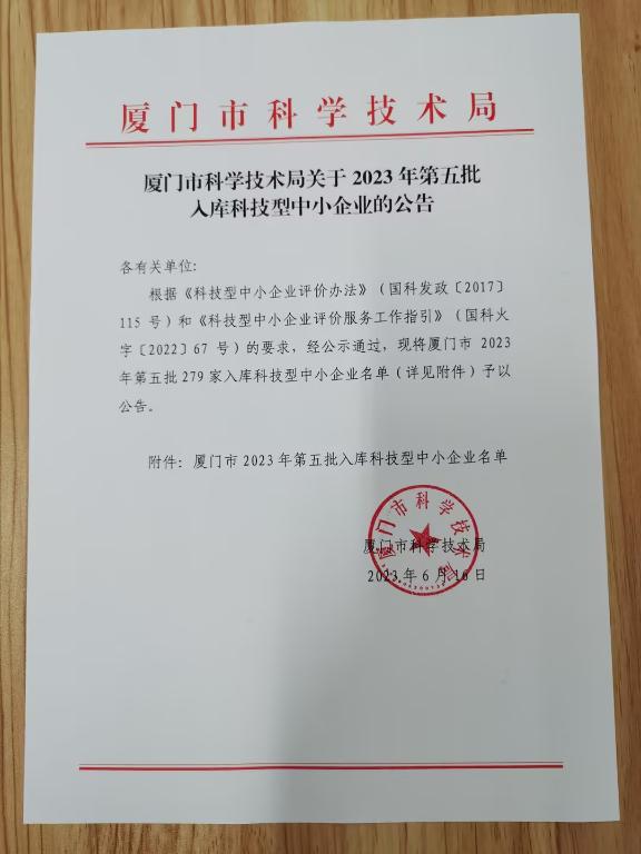 厦门市2023年第5批入库科技型中小企业名单公告正文.jpg PICTURE