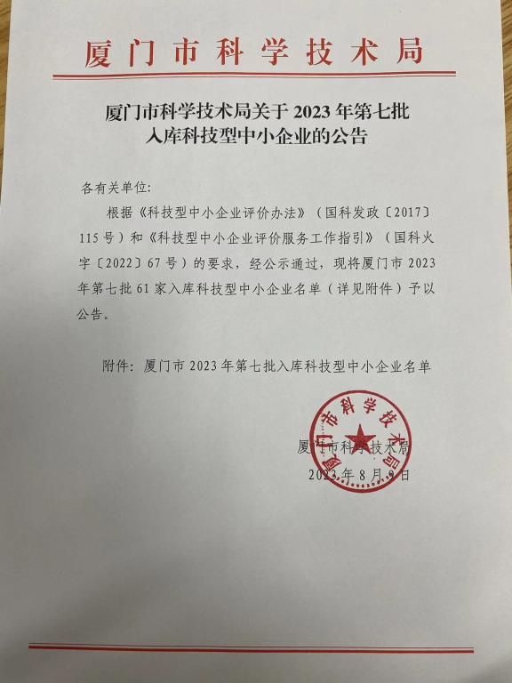 厦门市2023年第7批入库科技型中小企业名单公告正文.jpg PICTURE