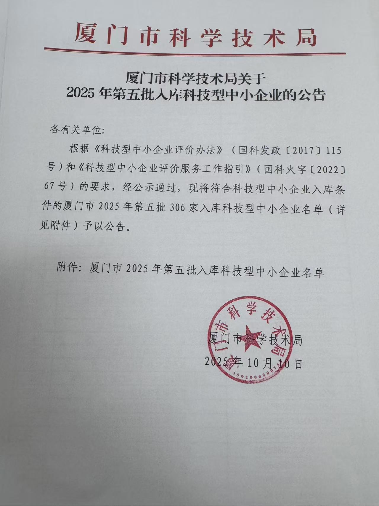 厦门市2025年第5批入库科技型中小企业名单公告正文.jpg PICTURE