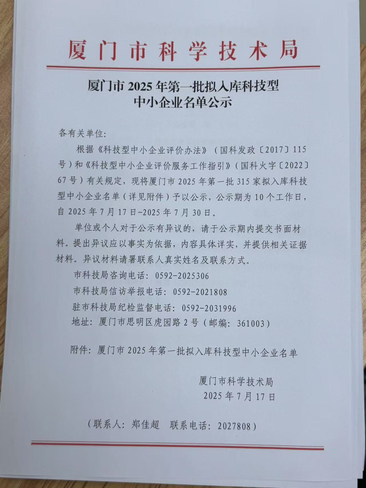 厦门市2025年第1批拟入库科技型中小企业名单公示正文.jpg PICTURE